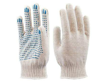 Перчатки х/б 5 нитей 10,5 кл. ПВХ Точка Белые (10шт/уп)(200шт/меш)