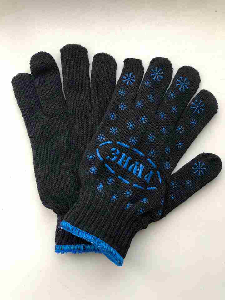 Перчатки х/б Утепленные ЗИМА с ПВХ Точка Черные (200шт/меш)
