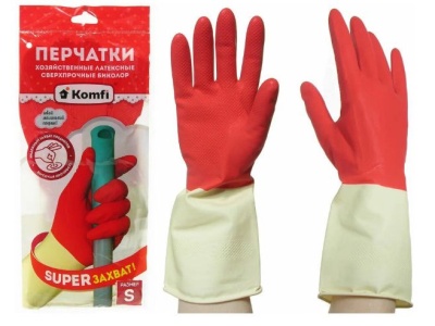 Перчатки латексные хозяйственные размер S БИКОЛОР СВЕРХПРОЧНЫЕ белый+красный