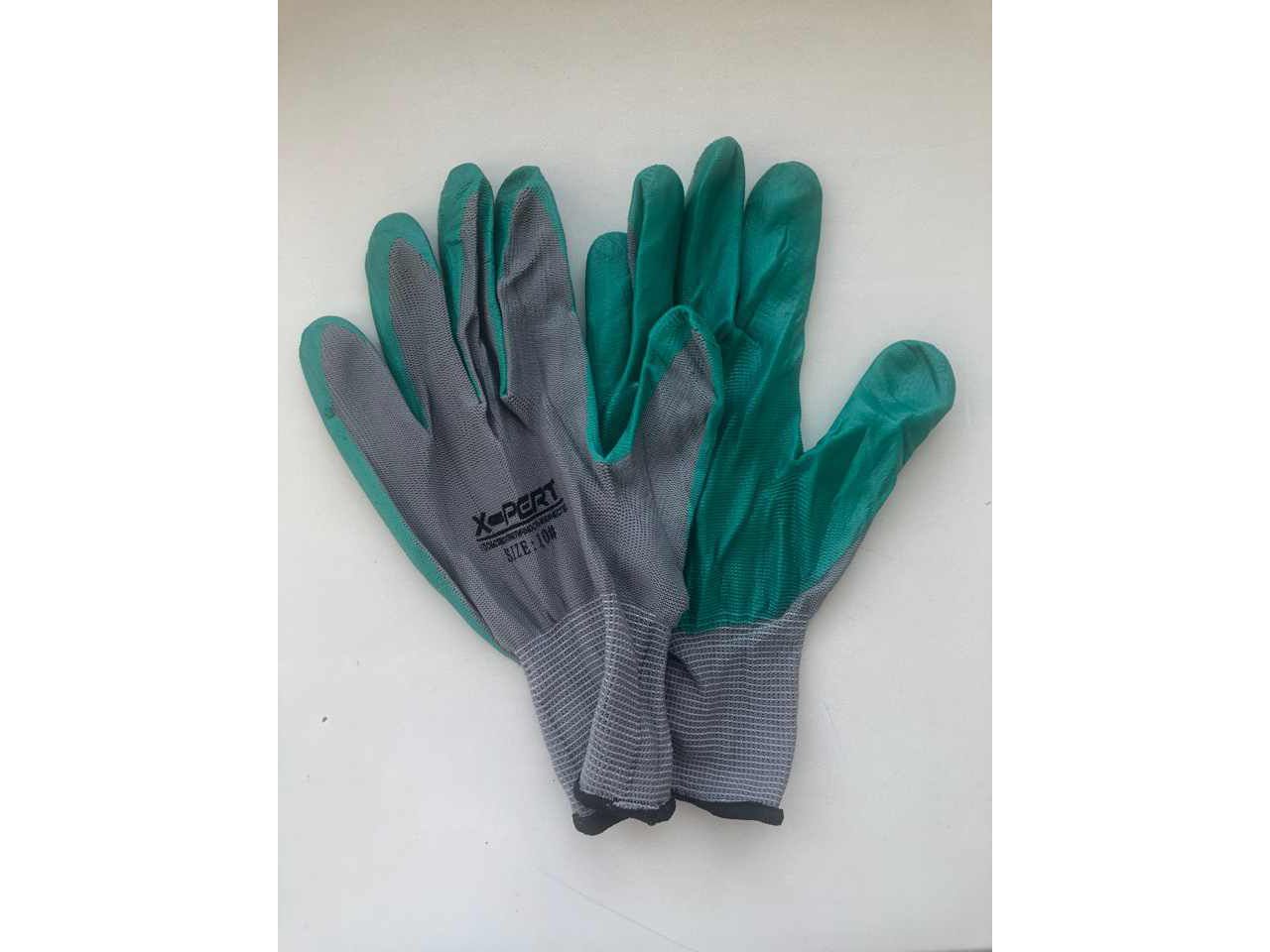 Перчатки нейлоновые Серые с зеленым латексным покрытием (уп-12шт)