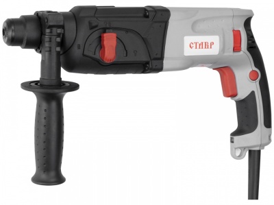 Перфоратор электрический СТАВР ПЭГ-780 Напряжение/частота: 220 В ± 10%/50 Гц Потребляемая мощность: 780 Вт Энергия удара: 3 Дж Число оборотов на холостом ходу: 0-1100 об/мин. Частота ударов: 0-4500 уд/мин. Режим работы: сверление/ сверление с ударом/долбление Патрон: SDS-plus Максимальный диаметр сверления: дерево - 35 мм, бетон - 26 мм, металл - 13 мм Длина сетевого кабеля: 3 м. Масса: 3,2 кг. Гарантия: 3 года