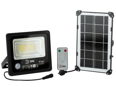 Уличный прожектор ЭРА ERAPRO-50 работает от солнечной батареи и отлично защищён от попадания влаги (IP65). Возможна эксплуатация при температуре от - 20 до + 50 градусов. Морозоустойчивый сменный аккумулятор Li-FePO4 и солнечная панель в комплекте. Полный цикл заряда от солнечного света составляет 8 часов. Источник света – 104 светодиода последнего поколения, не требующих замены на протяжении всего срока службы. В прожектор также встроен датчик движения с возможностью отключения. Время до перехода в дежурный режим - 30 секунд. В комплекте поставляется пульт дистанционного управления, который позволяет на расстоянии включать и выключать свет, отключать датчик движения, устанавливать таймер работы, регулировать яркость. Обеспечьте свой участок ярким светом вместе со светодиодным прожектором ERAPRO-50 от ЭРА!