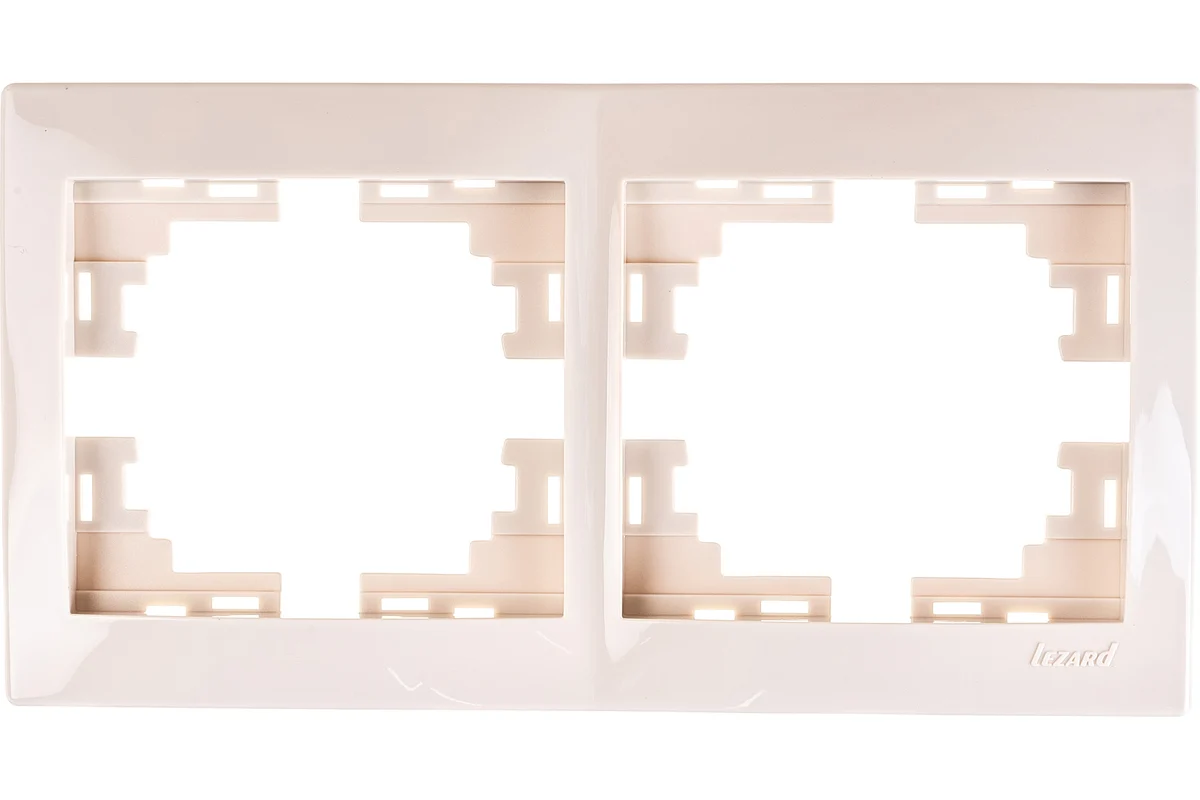 Рамка двухместная Lezard Mira 701-0300-147 предназначена для скрытия механизма розетки или выключателя, а также украшения и оформления комнаты в одном стиле. Рамка изготовлена из пластика высокого качеств, степень защиты от проникновения твердых тел и жидкости IP 20.