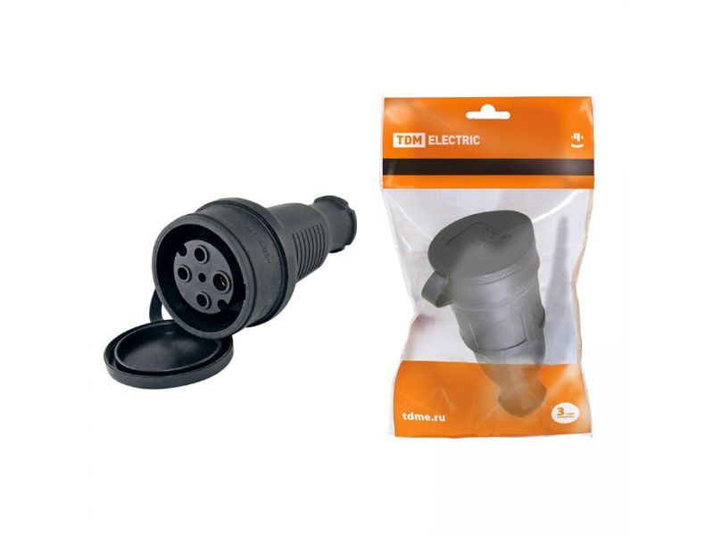 Разъем с заглушкой каучук 3Р+РЕ 32А 380В IP44 TDM