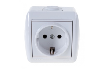 Розетка LEZARD Ната 710-0200-122 белая керамика, с заземлением, одноместная, монтаж накладной, в сборе, способ присоединения винтовая клемма.