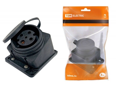 Розетка с заглушкой каучук наклонная 3P+РЕ 32А 380В IP44 TDM