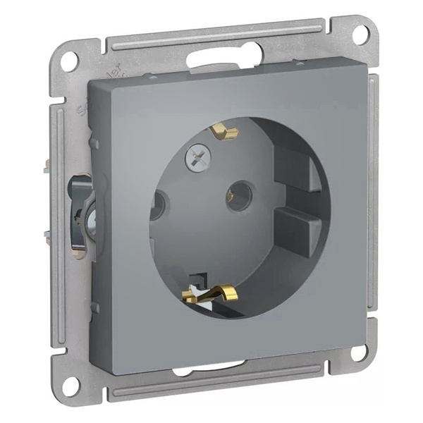 Механизм SE AtlasDesign (цвет грифель) розетки одинарной с заземлением и без шторок подходит для сетей 250 В, на ток 16 А.