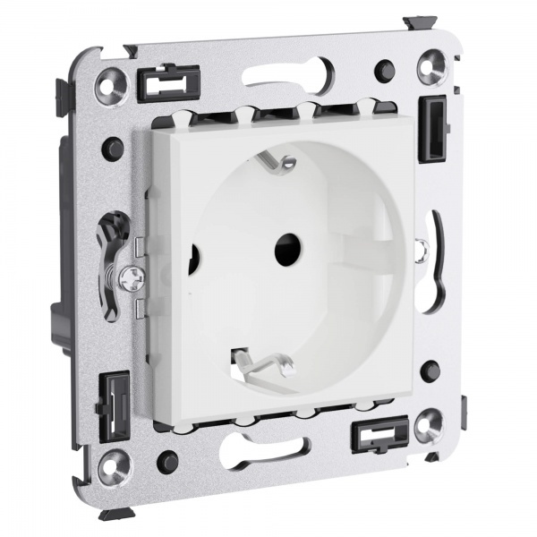 Розетка DKC с защитными шторками для скрытой установки, цвета белое облако. 4400003