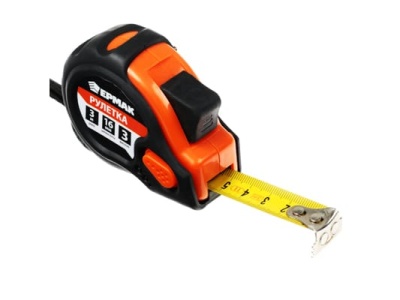 Рулетка 3 м, лента 16 мм. ЕРМАК Магнит с 3 фиксаторами и обрезиненным корпусом. Магнитный наконечник, ударопрочный корпус. Для профессиональных измерений.