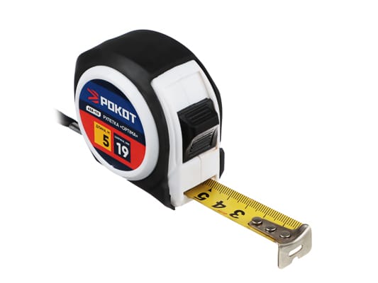 Рулетка 5 м, лента 19 мм. РОКОТ OPTIMA. Надежная рулетка для повседневных измерительных задач. Четкая шкала, удобный корпус.