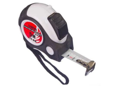 Рулетка 5 м, ширина 25 мм. РОКОТ STATUS автостоп. Обрезиненный корпус из АБС пластика. Защищенная лента, ремешок. Для любых измерительных задач.