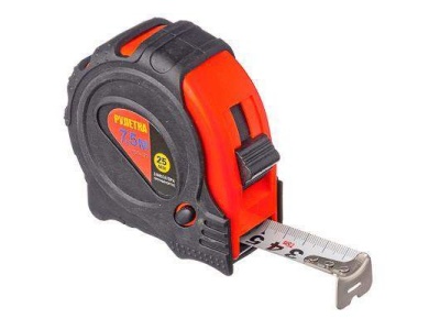 Рулетка 7,5 м, ширина 25 мм. РОКОТ с обрезиненным корпусом 3 фиксатора. Обрезиненный корпус, три стопора, удобная петля.