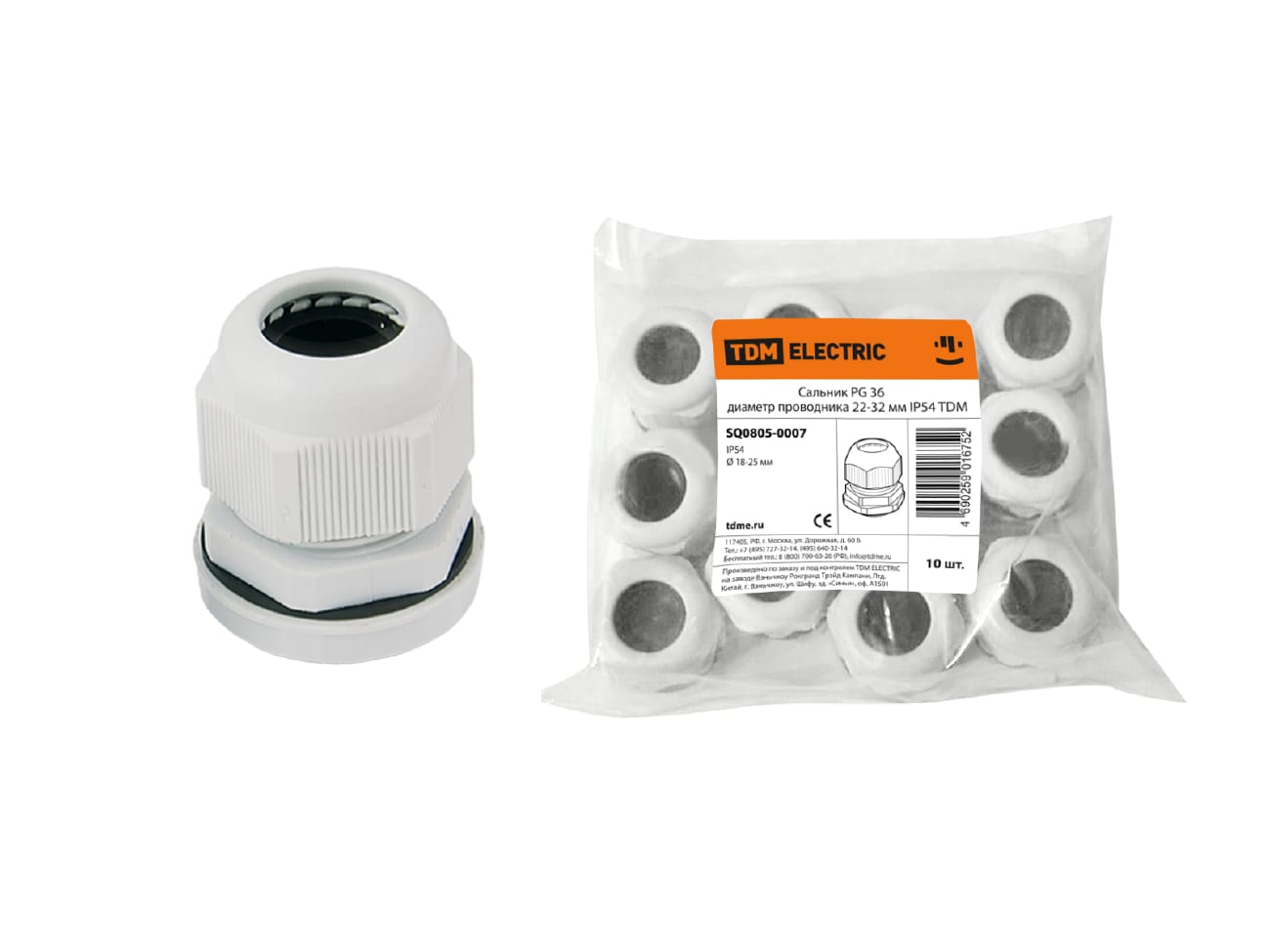 Сальник PG 36 диаметр прооводника 22-32мм IP54 TDM (10шт/уп)