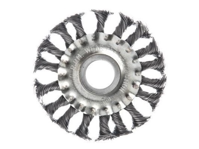 Щетка металлическая дисковая ЕРМАК для УШМ 100 мм/22 мм эффективно зачищает различные поверхности, включая металлические, удаляя с них ржавчину, стойкие загрязнения и краску. Устанавливается на угловую шлифовальную машину и может использоваться для зачистки сварных швов. Рабочая поверхность из крученой стальной проволоки отлично справляется со своими функциями, выдерживает интенсивную эксплуатацию в течение длительного времени.