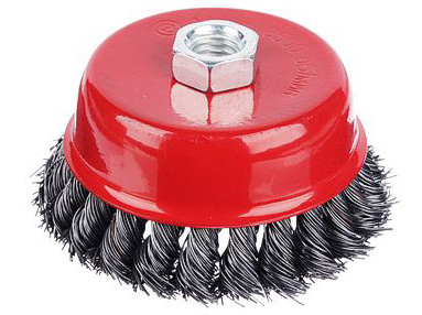 Щетка металлическая ЕРМАК для УШМ «Чашка» 100мм с типом крепления М14 – это насадка для угловой шлифовальной машины, которая применяется для грубой очистки любых металлических поверхностей, пазов и выемок от ржавчины, остатков краски, грязи, а также для зачистки сварных швов. Рабочая часть выполнена из крученой стальной проволоки повышенной прочности, устойчивой к износу и не подверженной коррозии, поэтому изделие рассчитано на длительный срок эксплуатации.