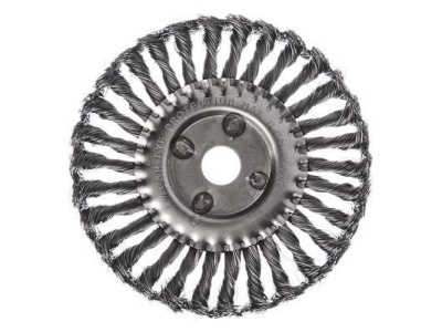 Металлическая щетка устанавливается на угловые шлифовальные машины. Ее диаметр позволяет быстро убрать любое загрязнение или остатки краски.