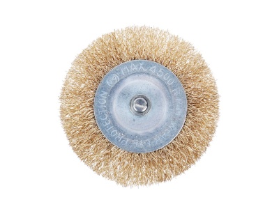 Плоская металлическая щетка ЕРМАК со шпилькой для дрели 75 мм используется в качестве насадки на дрель и применяется для зачистки поверхностей с целью снятия старого лакокрасочного покрытия, окалины, ржавчины и загрязнений. Латунная проволока не ржавеет, быстро и эффективно производит шлифовку, не изнашивается и может использоваться с инструментом с максимальным количеством оборотов 4500 в минуту.