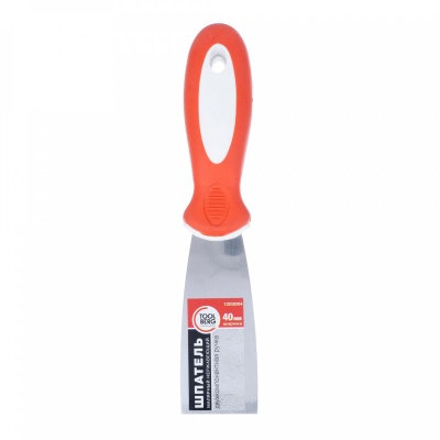Шпатель малярный двухк ручка 40мм 120. Применяется для нанесения на обрабатываемую поверхность и последующего выравнивания шпатлевки и других отделочных растворов. Профилированное полотно шпателя изготовлено из нержавеющей стали. Профессиональная двухкомпонентная рукоятка устраняет проскальзывание.
