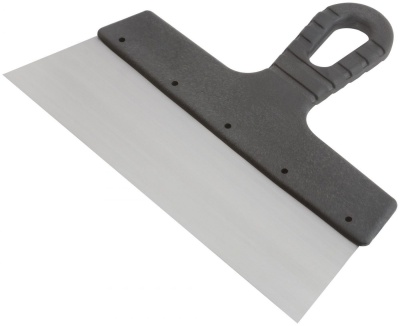 Шпатель со стальным лезвием и пластмассовой ручкой MOS имеет небольшие размеры и подходит для отделки небольших участков стены.
