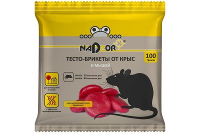 Тесто-брикет от крыс и мышей Nadzor 100 гр рекомендуется для борьбы с грызунами.Данная форма приманки создана специально для борьбы с крысами, так как в своем обычном питании крысы, в отличие от мышей, предпочитают не столько зерно, сколько разнообразный кормрастительного и даже животного происхождения, и тесто-брикеты отвечают этим предпочтениям .Мягкая масса в виде теста, содержащая активное действующее вещество и комплекс привлекателей, упакована в индивидуальные пакетики из фильтр-бумаги, которые позволяют легко дозировать приманку и не соприкасаться с ней. Активное действующее вещество последнего поколения обеспечивает гибель грызунов на 3-7 день после однократного поедания ими приманки.