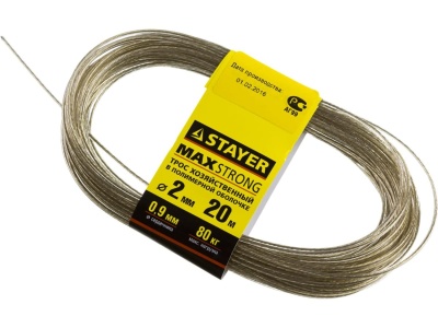 Трос хозяйственный STAYER стальной 20м d 2 мм в полимерной оболочке