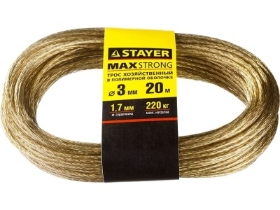 Трос хозяйственный STAYER стальной 20м d 3 мм в полимерной оболочке