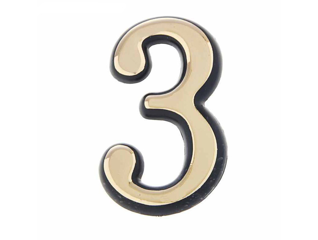 Цифра дверная "3" пластик золото Аллюр (20шт/уп)