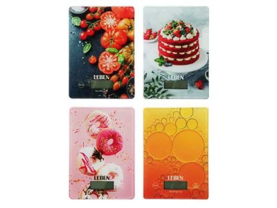 Весы кухонные электронные LEBEN нагрузка до 5кг стекло с дизайном прямоугольные (24шт/кор)