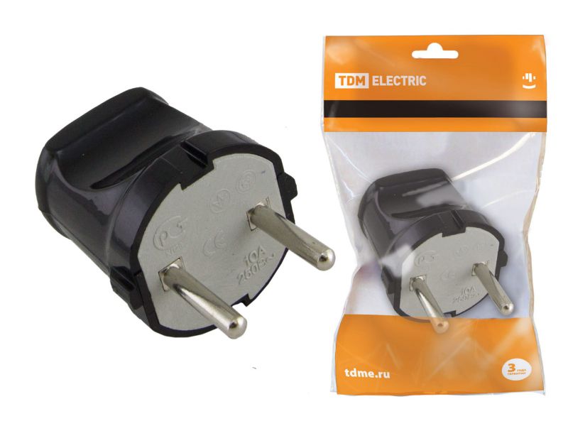 Вилка б/з черная 6А 250В TDM