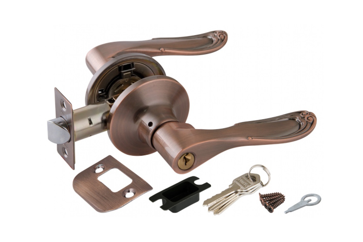 Замок ручка Медь с ключом,фиксатором 6030 АС-Е
