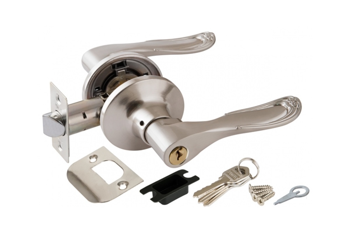 Замок ручка Никель матовый с ключом,фиксатором 6030 SN-Е