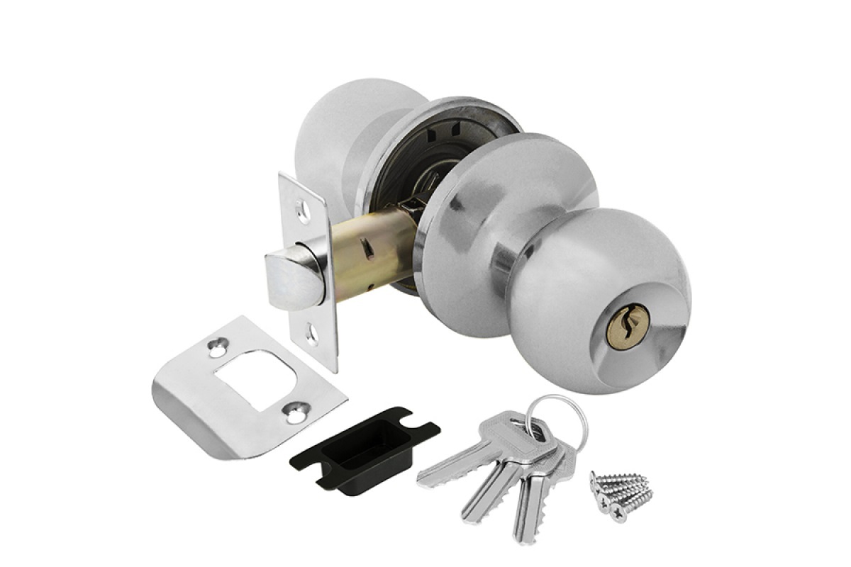 Замок шар Хром с ключом,фиксатором 6082 СР-Е