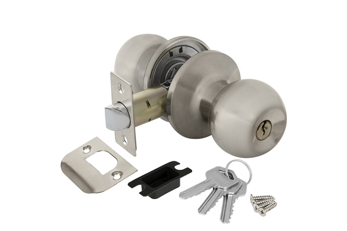 Замок шар Никель матовый с ключом,фиксатором 6082 SN-E