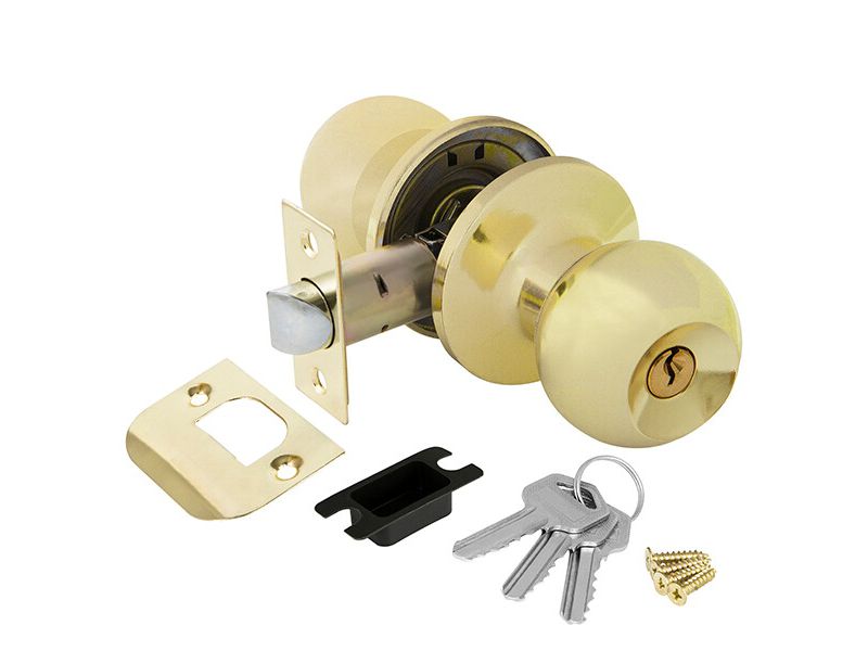 Замок шар Золото с ключом,фиксатором 6082 РВ-Е