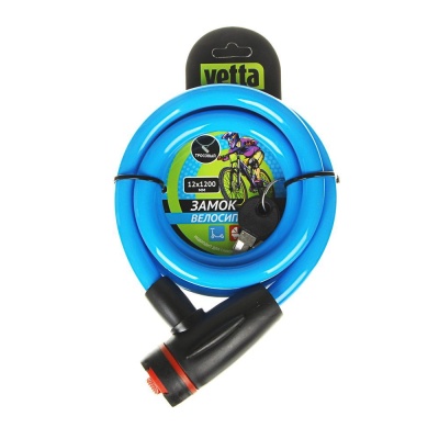 Замок велосипедный противоугонный тросовый 12*1200мм металл пластик 3 цвета VETTA (100шт/кор)