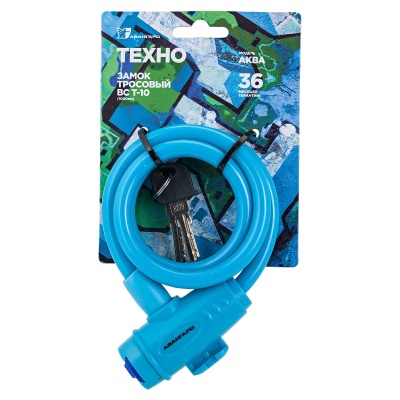 Замок велосипедный тросовый 10*1000 мм АВАНГАРД ВС-Т10 ТЕХНО голубой (60шт/кор)
