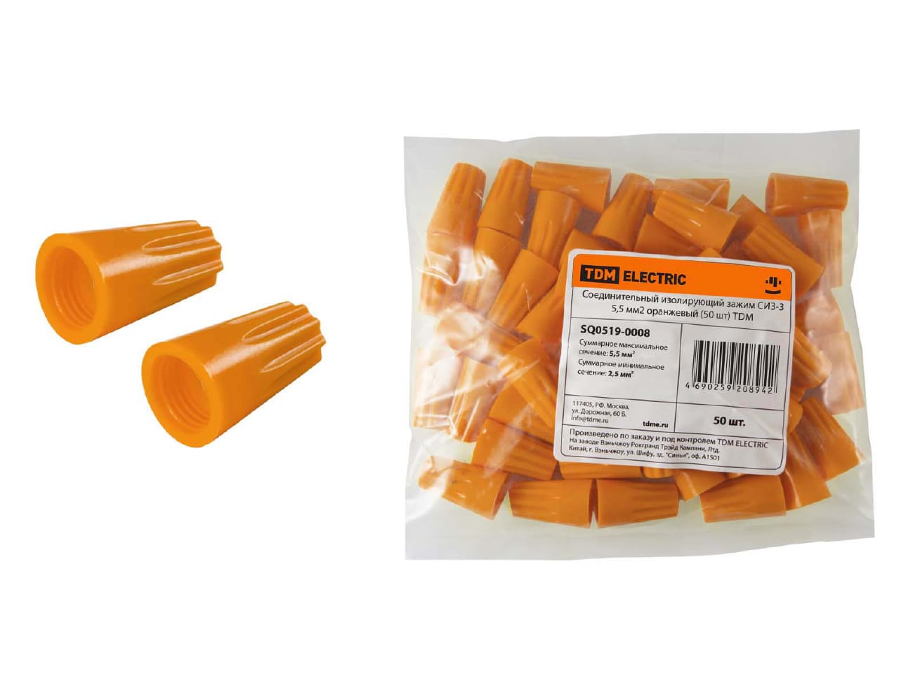 Зажим соединительный изолирующий СИЗ-3 5,5мм2 оранжевый TDM (50шт/уп)